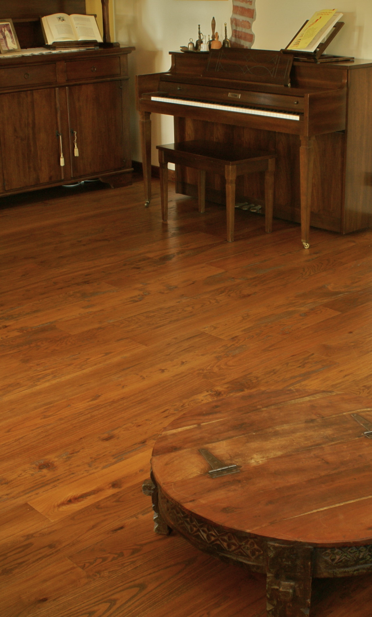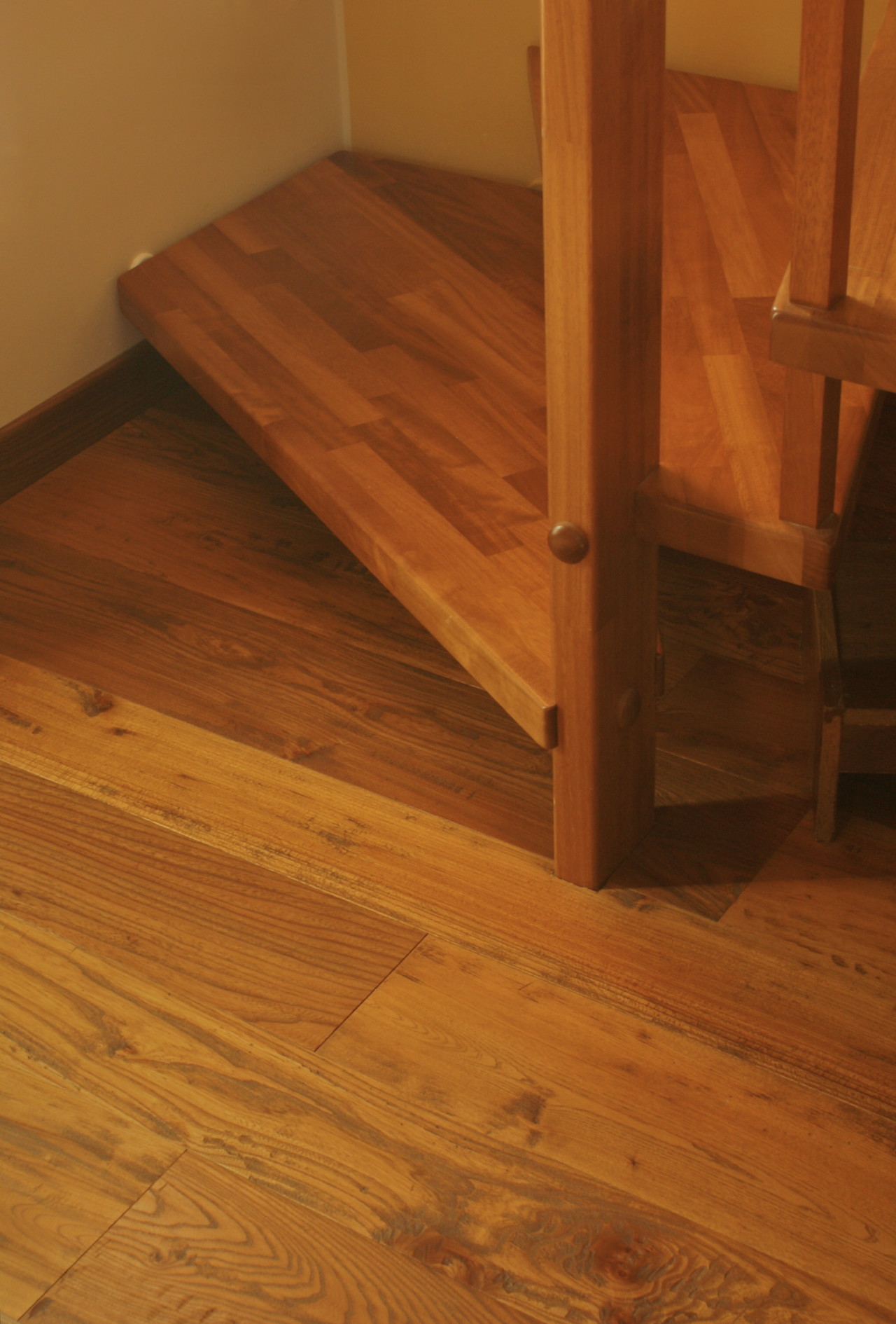 Atmosfera rustica per questa bella casa di campagna di cui assaporiamo solo alcuni dettagli. Il pavimento è un affascinante Olmo europeo con finitura “Millenium”, piallato a mano, tarlato e verniciato marciato.