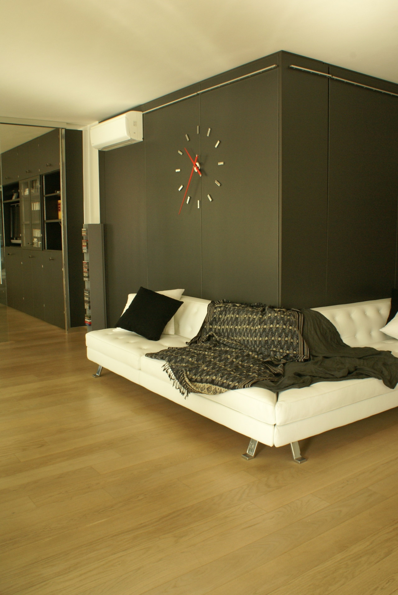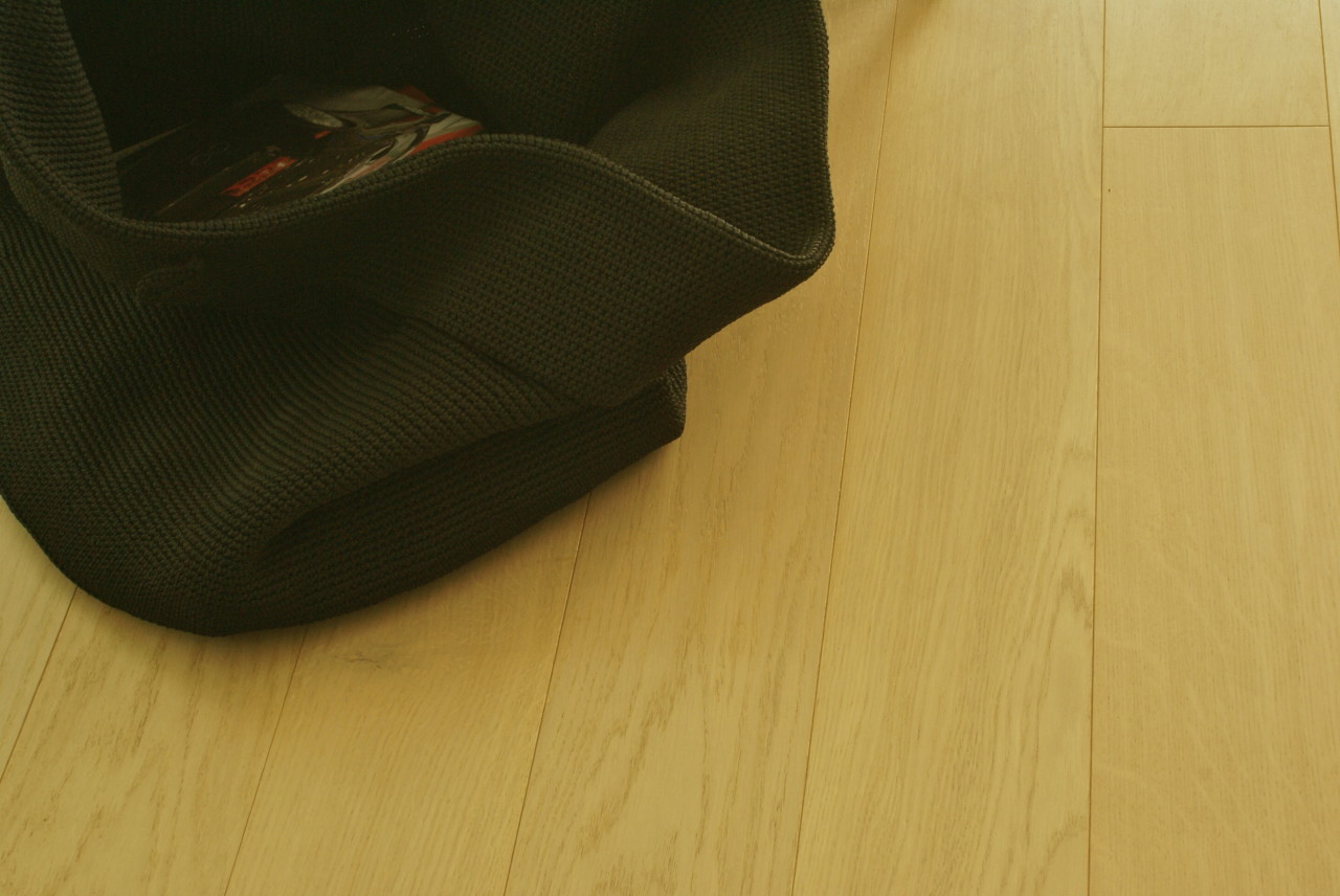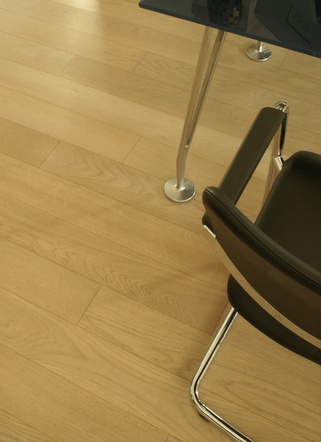 Il pavimento per cui hanno optato i titolari è un Plank 140 Atelier Michelangelo di Listone Giordano. Rovere di Fontaines Montblanc il legno, nella scelta Cottage. La finitura è molto naturale: oliato bianco.
