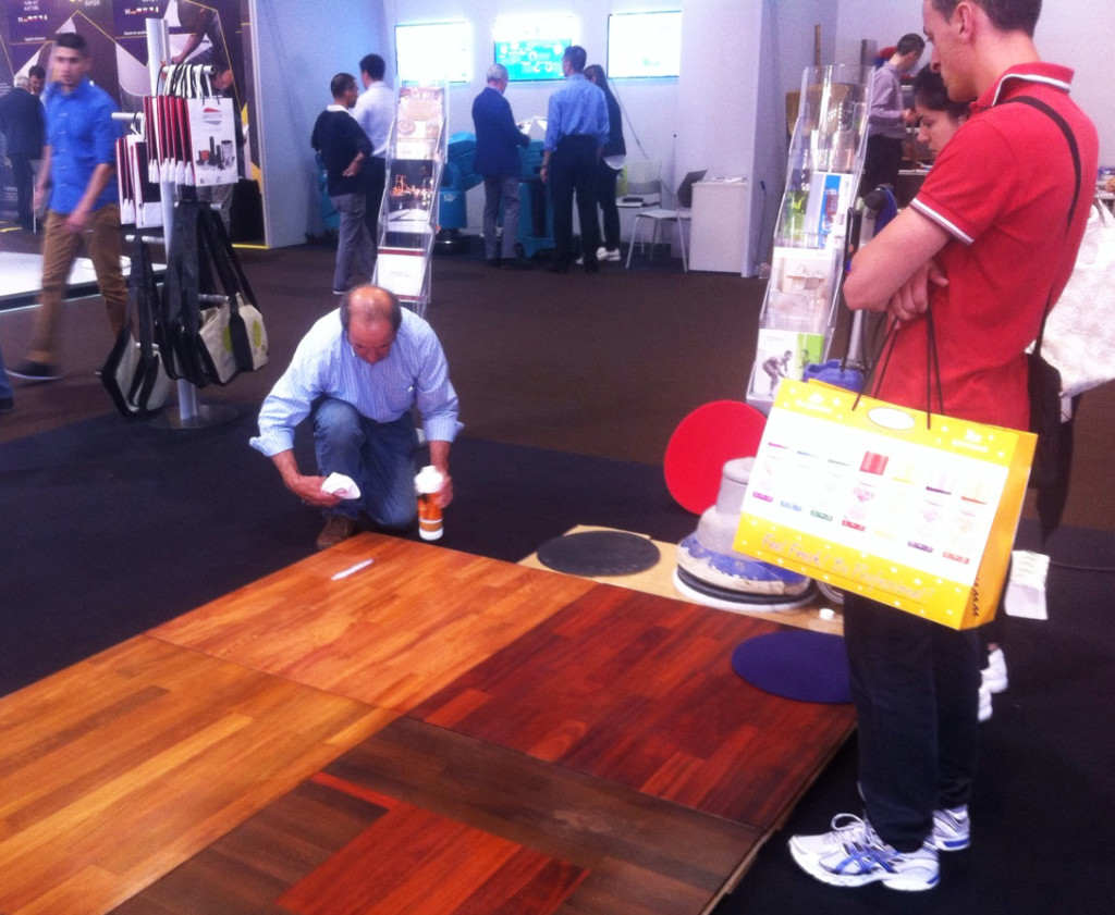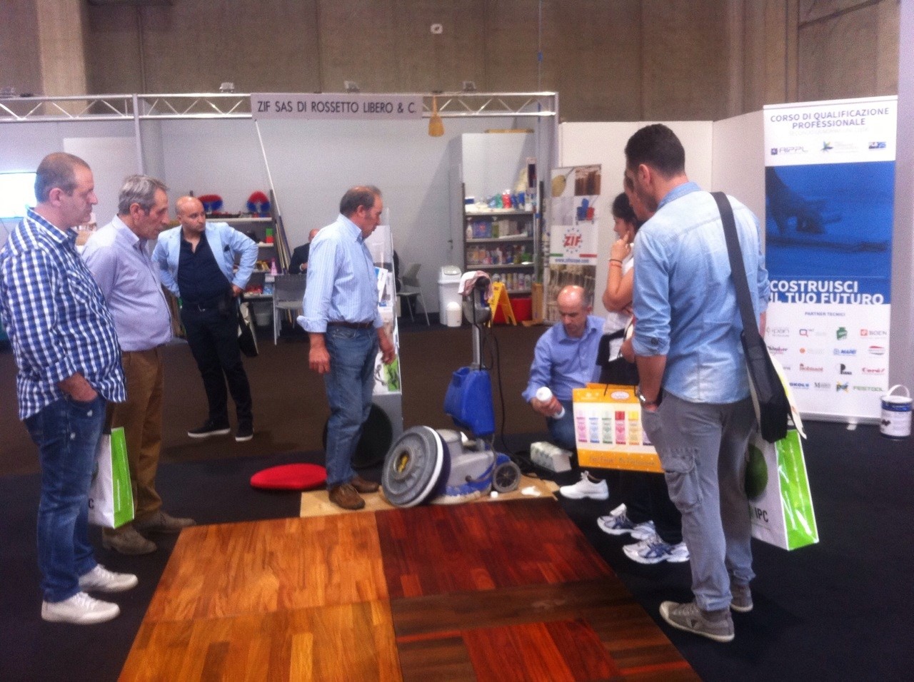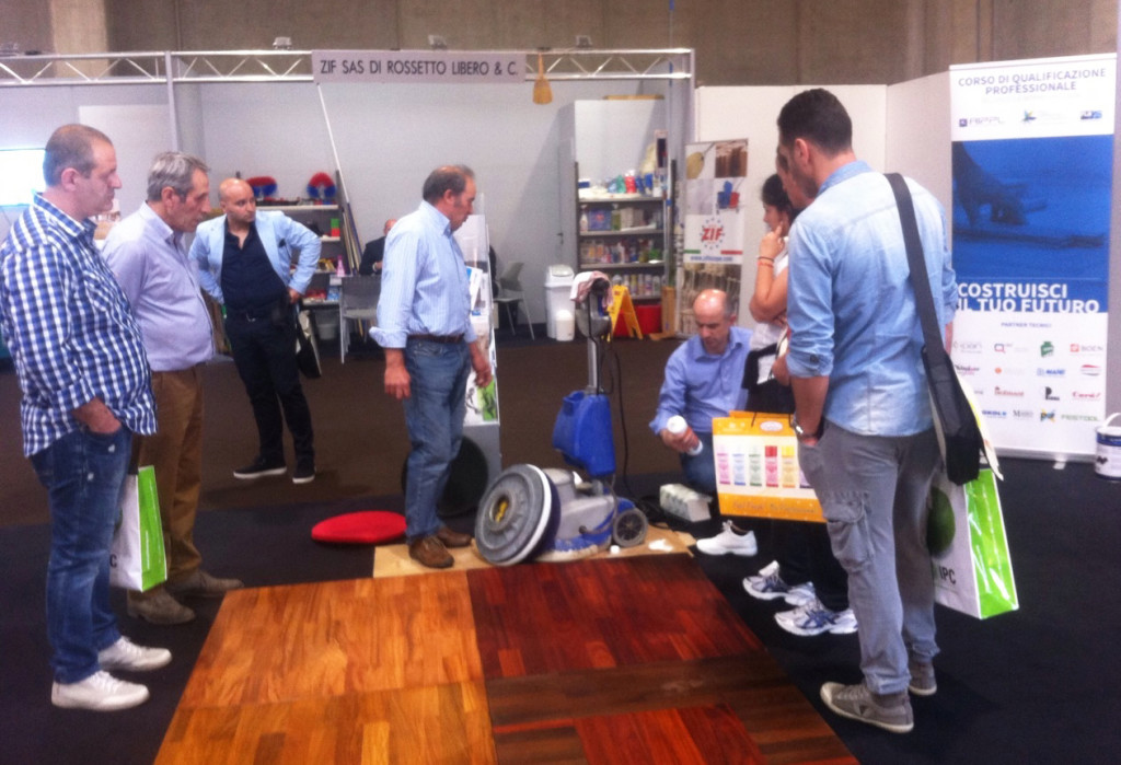 Con il motto “Il parquet può durare secoli, trattiamolo con cura”, il 19, il 20 e il 21 maggio (dalle 11 a mezzogiorno e dalle 15 alle 16), in un’area dimostrativa dedicata (allestita anche grazie al contributo della aziende sponsor*) – un ampio stand con al centro una pedana composta da 4 porzioni di parquet trattati con differenti tipologie di finitura – gli specialisti dell’Associazione, aiutati da Costantino Zanatta (trattatore esperto), hanno mostrato alle molte imprese di pulizia e società di global service intervenute come prendersi cura al meglio di un pavimento di legno. Per non compromettere il lavoro del parchettista e, soprattutto, perché un cliente soddisfatto del suo parquet innescherà un passaparola positivo.