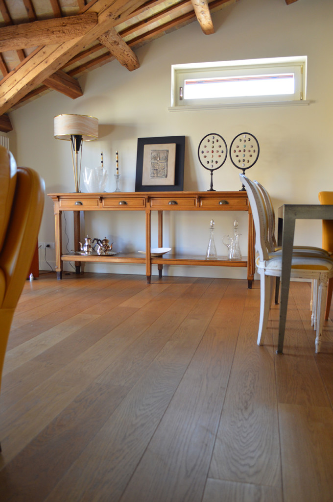 Il parquet posato fa parte della collezione Gran Tavolato Friulano, è un pavimento oliato, on spessore 15 mm, larghezza 240 mm e lunghezza da 2 mt a 3 mt. Come tutti i prodotti Friulparchet, è fabbricato interamente in Italia e le finiture sono eseguite esclusivamente a mano.