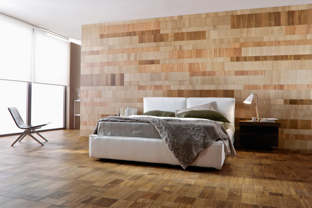 Il legno perde la forma tradizionale del parquet per acquisire un’eleganza tutta nuova. Ideale per rivestire pavimenti e pareti, permette di creare seducenti combinazioni combinando diversi colori.