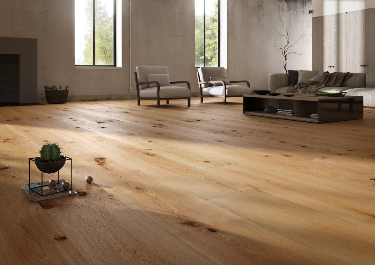 Dal design di Corà LAB nasce Forever1919: materico, autentico, vivo. Un parquet in Rovere Europeo, in listoni o quadrotte, dal sapore vintage dato da colorazioni non omogenee con venature in rilievo e nodi ripristinati a stucco o lavorati lisci, leggermente stondati. La resa tattile del pavimento è fortissima: un’emozione da toccar con mano, la seduzione del legno lavorato artigianalmente si esalta e crea spazi di intensa personalità. Diverse le possibilità di posa: posa classica, ungherese e a quadrotti, incollata o flottante.