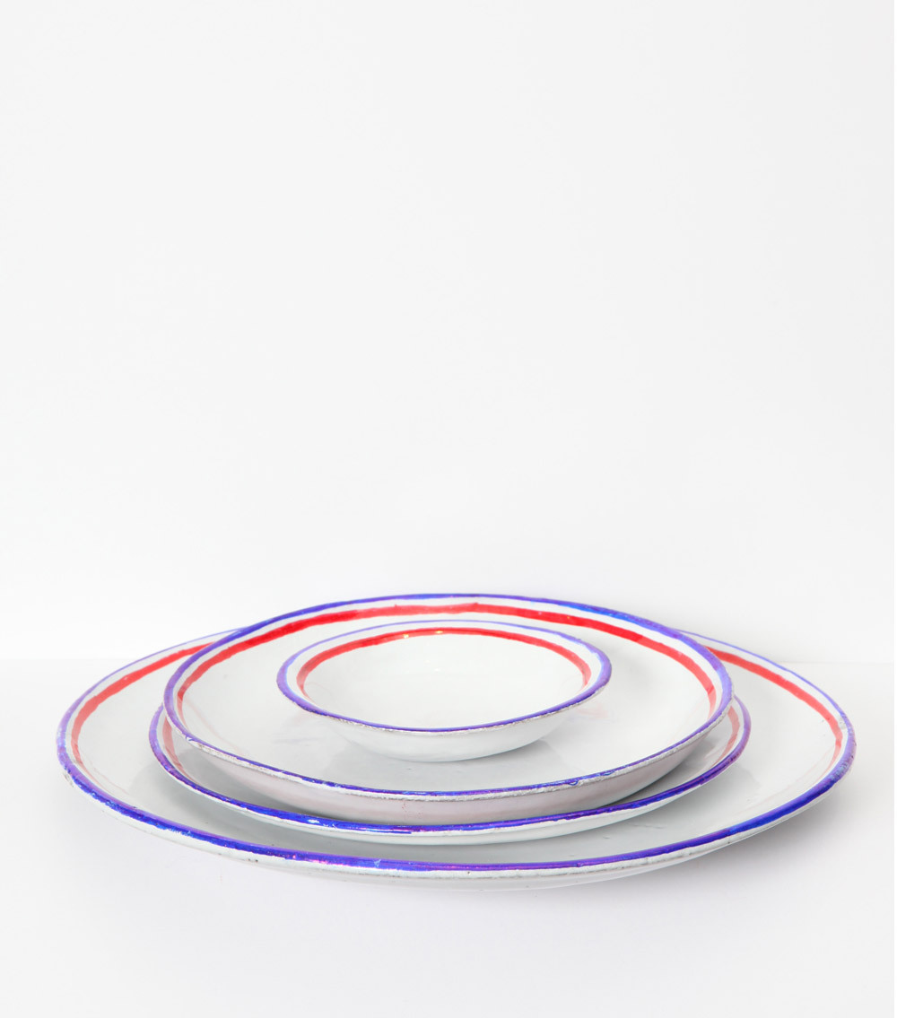 Raffinati questi piati in ceramica bianca, con decorazioni blu e rosso.