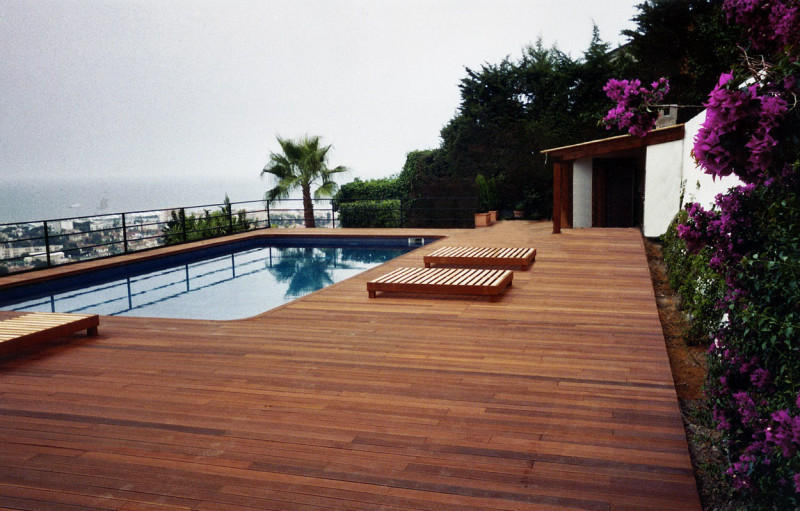Nizza, Costa Azzurra: Ipé oliato con faccia liscia per la terrazza di questa abitazione con vista mare.