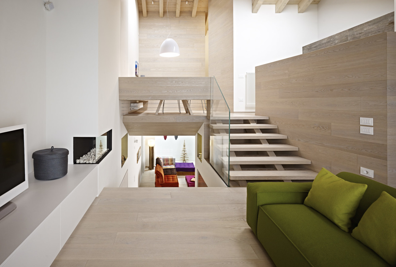 La base è un “mattone” in legno biocompatibile: un modulo costruttivo completamente naturale, che nasce dal sistema di composizione di elementi tridimensionali realizzati con tavole a tre strati incrociati trattate con Fiemme 3000 Bio Plus (speciale miscela di oltre 50 sostanze biocompatibili).