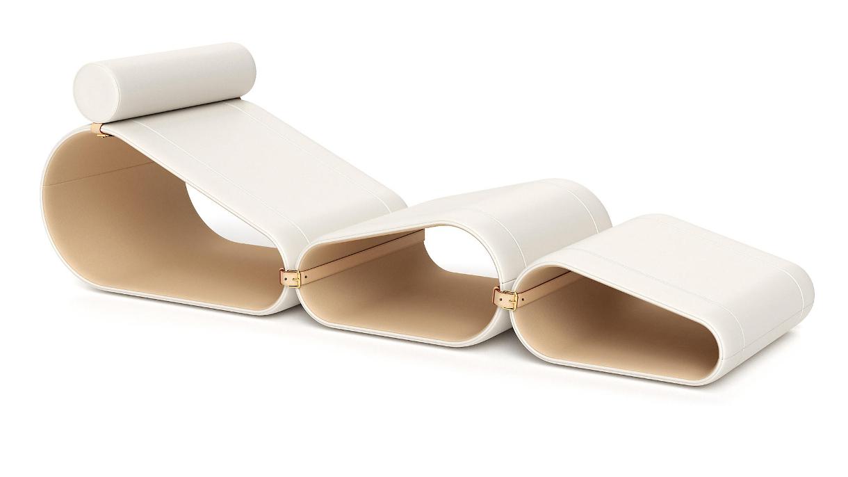 Un’oasi del relax, pieghevole e trasportabile. I tre moduli indipendenti che la compongono, si incastrano come un puzzle dando vita a tre sedute diverse: una chaise longue, una poltrona o un pouf. La chaise longue è progettata dal designer olandese Marcel Wanders per Louis Vuitton.