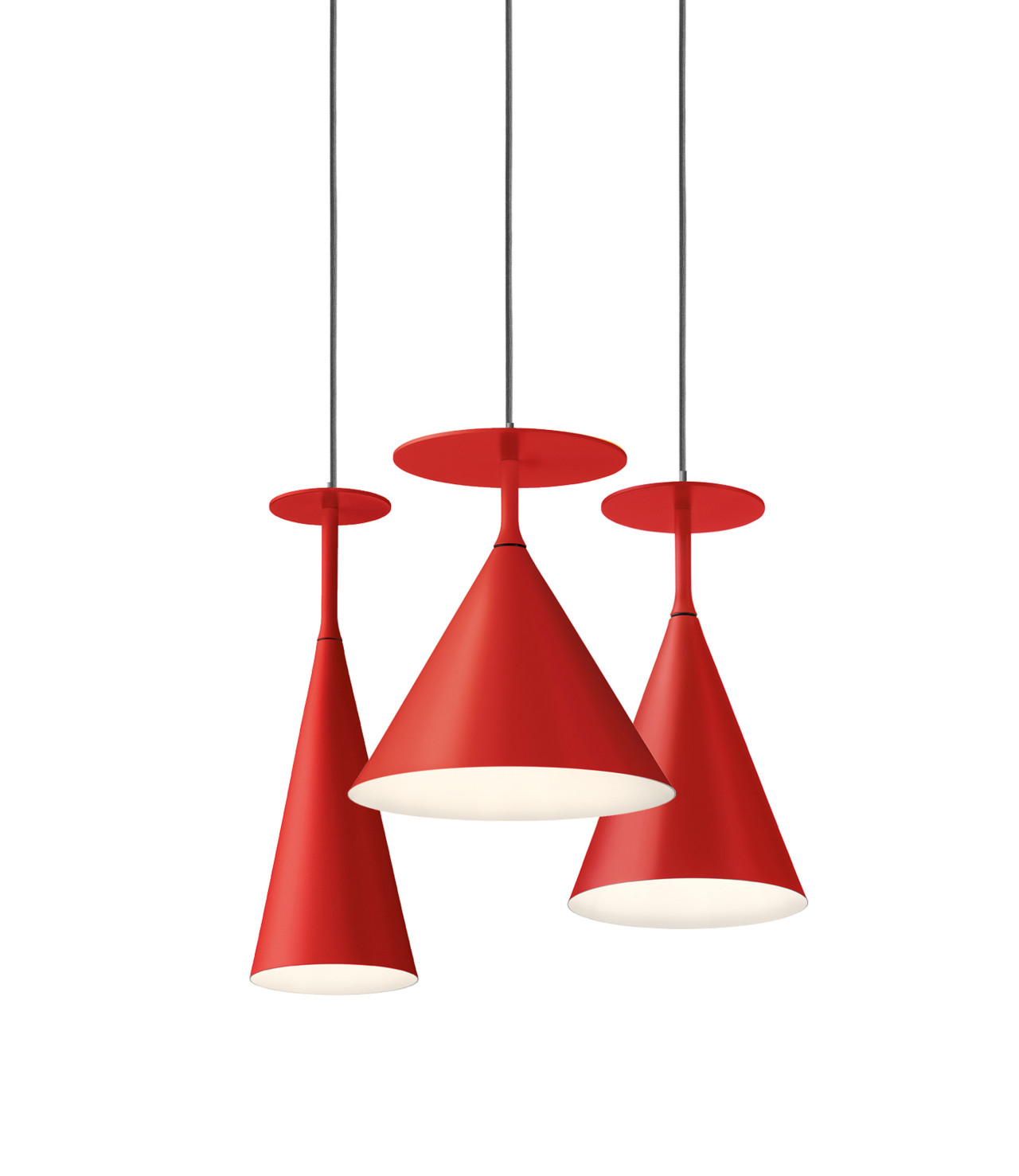 Un cono, uno stelo e un disco in varie dimensioni. Elementi geometrici elementari da assemblare fra loro, in un tridimensionale gioco di intersezioni e accostamenti. Forme che si librano nell’aria come piccole architetture. Un sistema versatile, aperto alle diverse situazioni abitative o di lavoro.