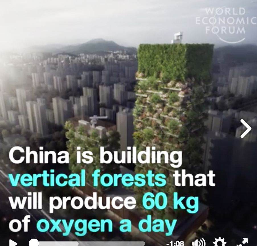 Mostrando il progetto di Milano e le altre architetture verdi di SBA in costruzione in Cina, il video del World Economic Forum afferma che “scegliendo di aumentare del 10% le superfici verdi nelle città, la Cina darà nei prossimi anni un contributo importante alla lotta contro i drammatici effetti del cambiamento climatico“.