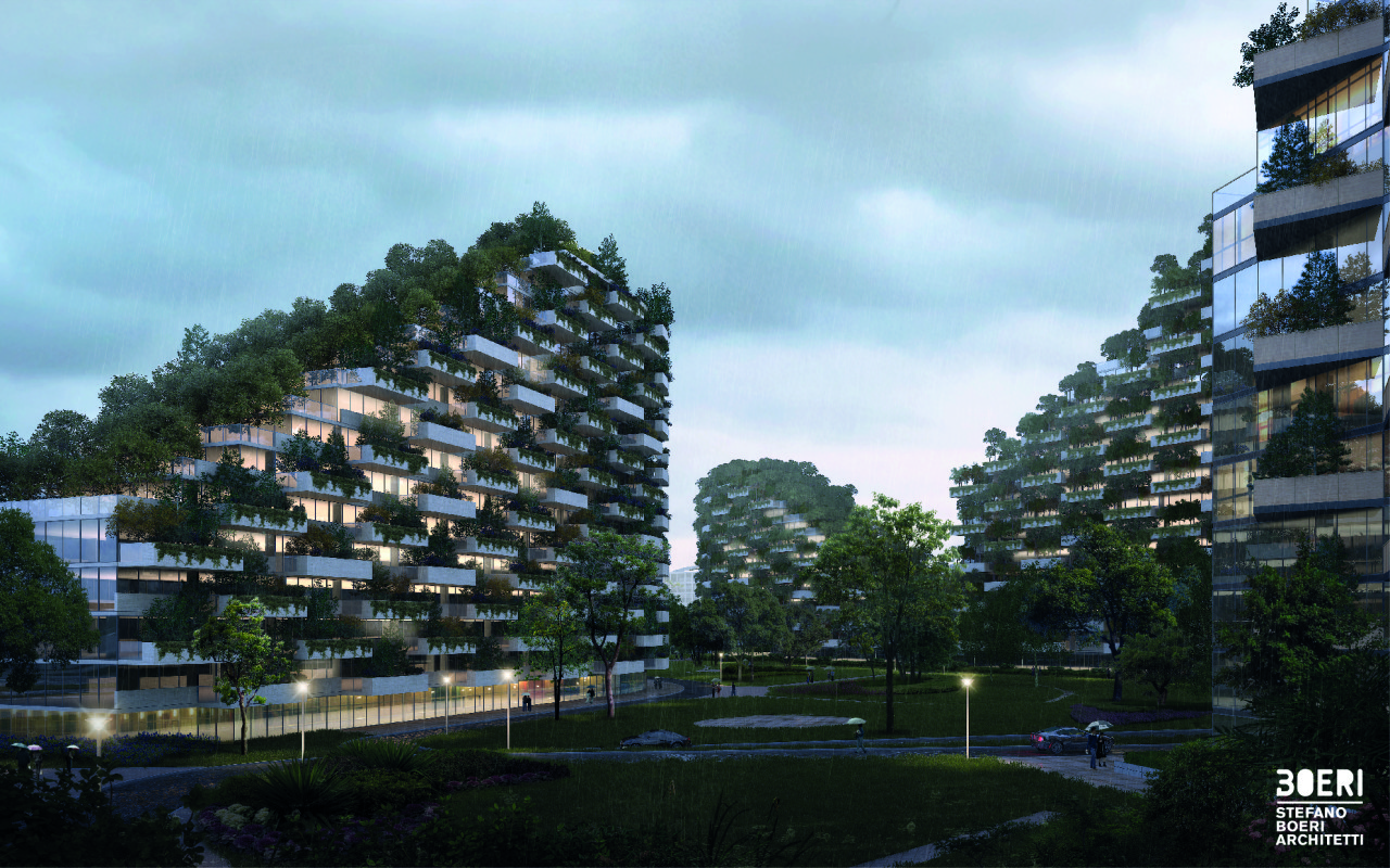 Nel complesso la città ospiterà 40.000 alberi e circa 1 milione di piante di più di 100 specie. La diffusione delle piante non sarà solo lungo i viali, nei parchi e nei giardini, ma anche sulle facciate degli edifici, e consentirà ad un centro già autosufficiente dal punto di vista energetico di contribuire al miglioramento della qualità dell’aria, di ridurre la temperatura media, di generare una barriera al rumore e di aumentare la biodiversità delle specie viventi.