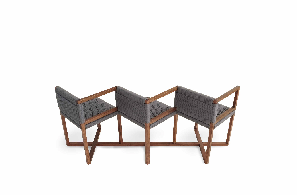 Una traduzione non comune dell’idea di divano: Efasma è un pezzo divertente, in casa come in un bar. La struttura è in legno massello di noce.