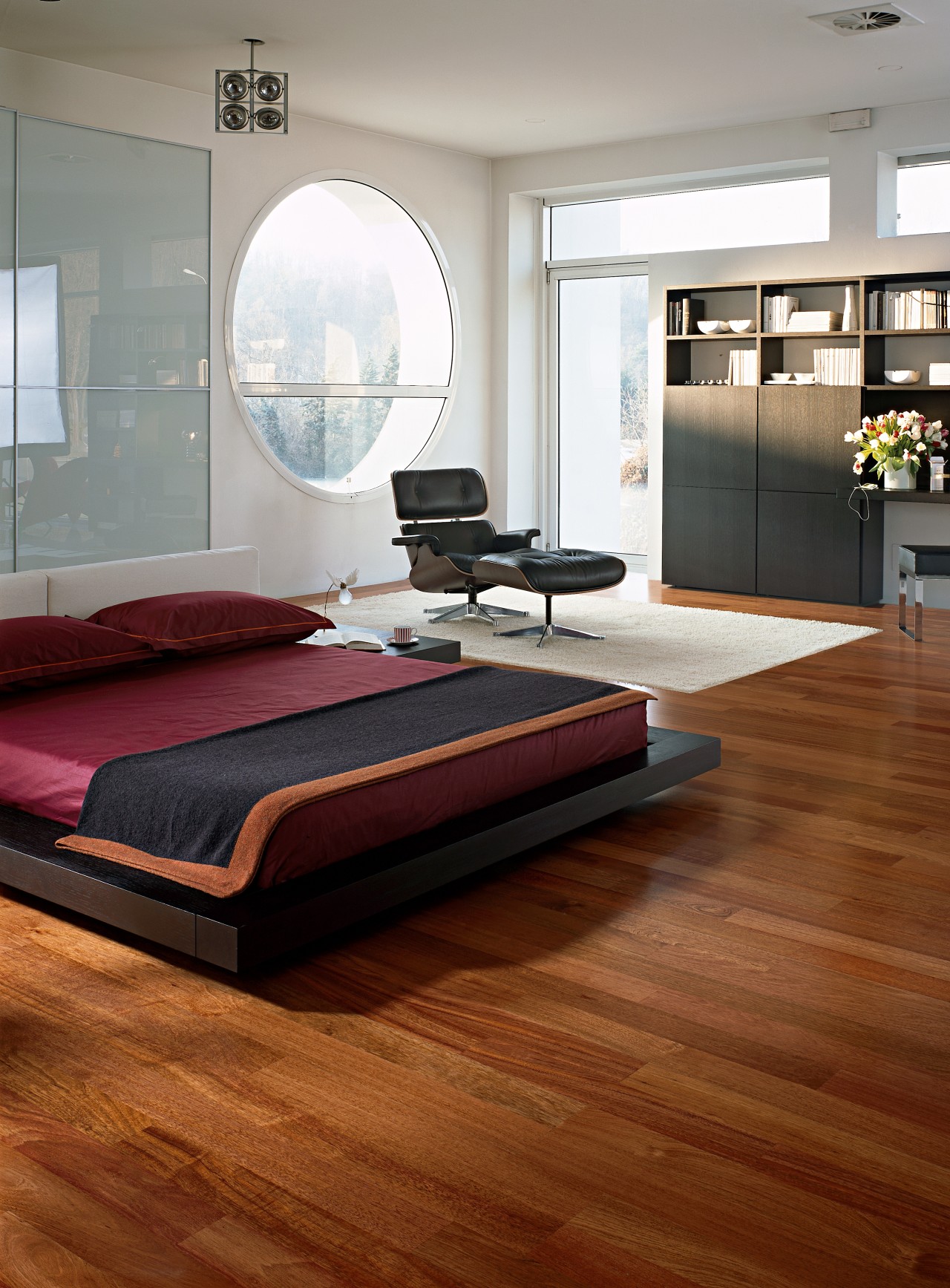 Le tavole in Jatoba FSC sono disponibili nella versione 2 strip, come nella foto (Brasilia), e 3 strip (La Paz).
