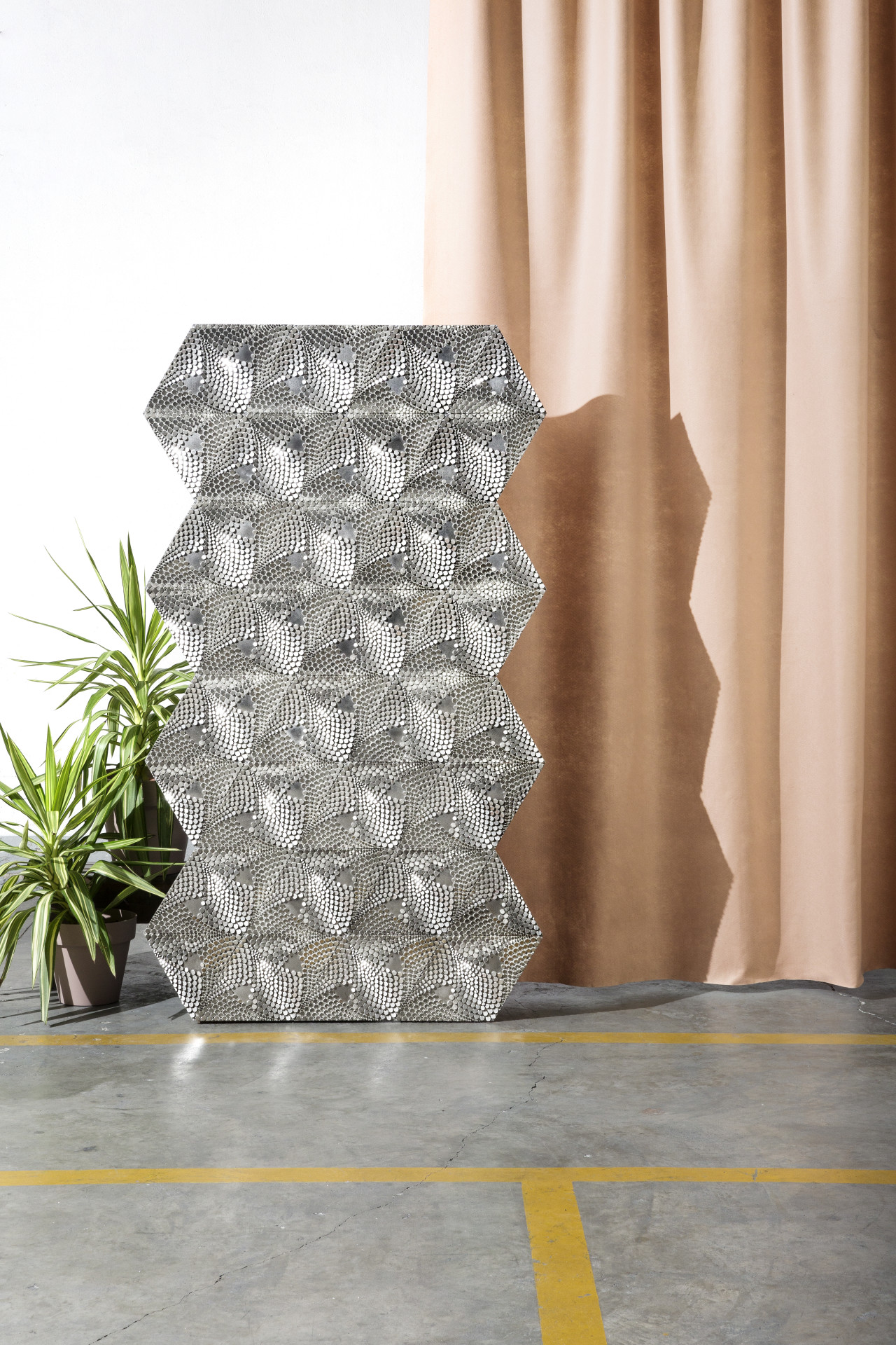 Studio Lido progetta per Marinoni Peltro una collezione di rivestimenti in peltro dall’aspetto altamente decorativo, che, per usare le parole di Gio Ponti, “vanno muovendosi con le luci e con le ombre”.