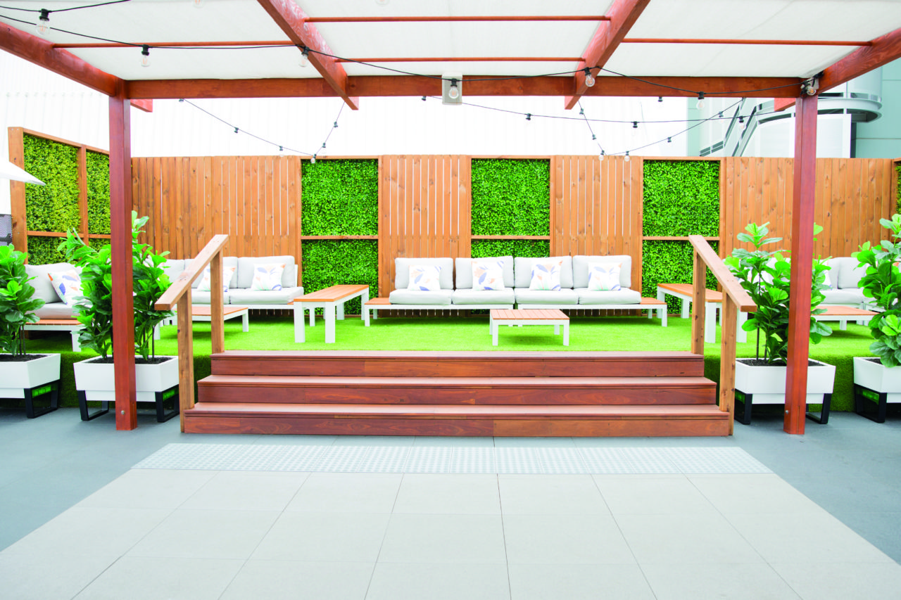 L’Hi-Line Rooftop Bar, situato su di una terrazza di quasi 1000 metri quadrati e con vista sullo splendido skyline della città, è un luogo di massimo relax, dove i clienti possono godere di un locale esterno chic e spazioso, con strutture in legno e sottile ferro bianco o nero, forme semplici e geometriche, sgabelli e poltroncine illuminati da fili di lampadine si alternano a piante sempreverdi e ombrelloni parasole.