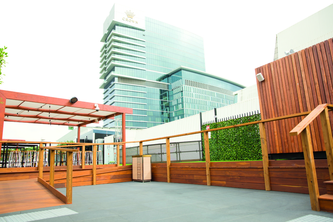 Hi-Line Rooftop Bar è il nuovo bar sopraelevato del Crown Resort di Perth, in Australia, dove i piedistalli Balance di Impertek hanno fatto da supporto a ben 600 mq di pavimentazione extra-lusso.