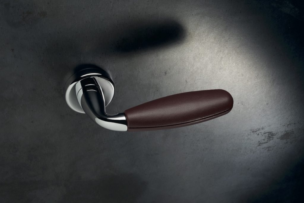 La maniglia Club, disegnata da Vico Magistretti per Olivari, è una vera chicca. “Come succedeva sempre con Vico Magistretti – raccontano in azienda –, l’idea è nata da una conversazione: ragionando con lui sul senso del comfort è nata l’idea di realizzare una maniglia con un rivestimento in pelle, per renderla piacevole al tatto”.