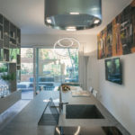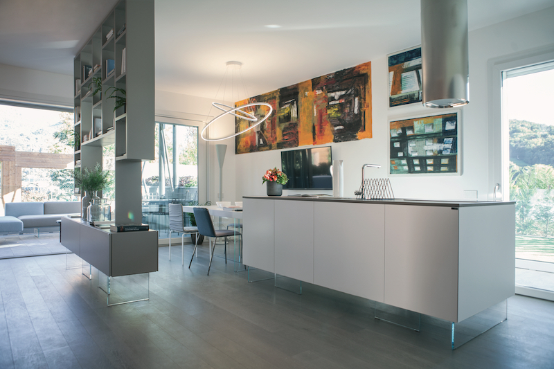 All’interno del Lago Tower l’open space ospita cucina e soggiorno, separate con leggerezza da una libreria Weightless che scende dal soffitto come una stalattite. A completare l’ambiente anche un ampio divano Air a cui si accompagna un tavolo sospeso che accoglie cuochi e commensali. La cameretta dei bambini si trasforma, invece, nel regno della fantasia: il letto Weightless, sospeso e soppalcato, diventa un fortino ideale per accogliere il gioco e il riposo.
