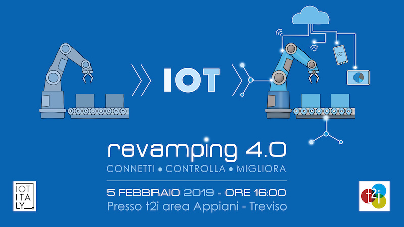 IotItaly, in collaborazione con t2i Trasferimento Tecnologico e Confartigianato Treviso, presenta il convegno dal titolo “Revamping 4.0: connetti, controlla, migliora“, ovvero la trasformazione dell’attività in Industria 4.0 tramite IoT, senza sostituire i macchinari già presenti in azienda.