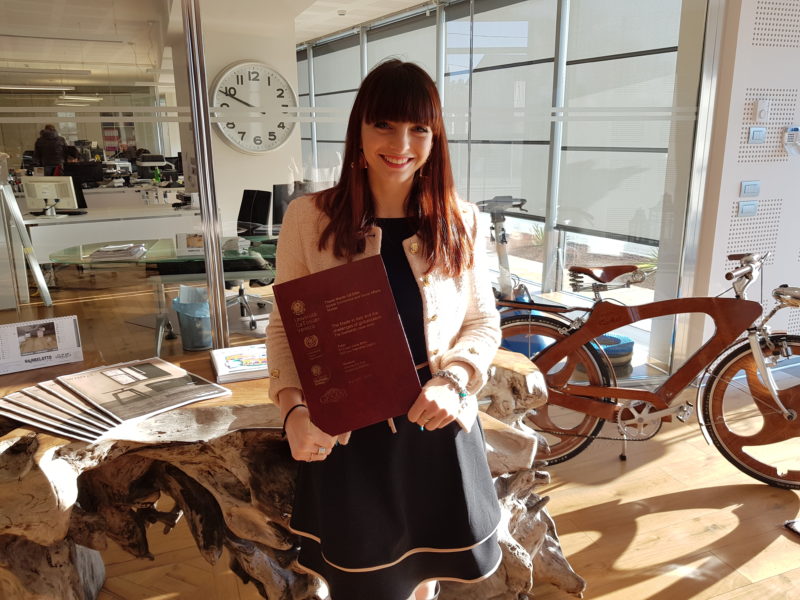 Durante la serata è stata poi presentata la tesi realizzata da Alessia Da Ros che ha dedicato il proprio lavoro al made in Italy e al marchio Garbelotto. La giovane laureata discuterà la propria tesi come conclusione del corso di studi del Master in economia globale presso l’Università Ca Foscari di Venezia, ponendo l’accento su come il bello e il ben fatto sia una importante leva per far emergere all’estero le imprese italiane. Questo marchio internazionale è stato infatti influenzato dal fenomeno definito come globalizzazione con le conseguenti sfide ed opportunità che ciò ha causato, che Garbelotto ha saputo cogliere per diventare un punto di riferimento nel mondo del parquet.