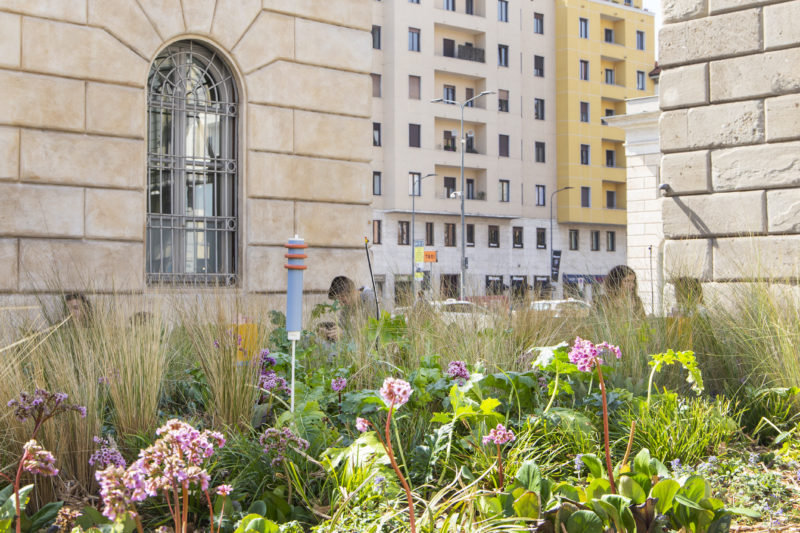 Progettato dall’architetto Davide Fabio Colaci, in collaborazione con gli studenti del Politecnico di Milano, è un terreno con caratteristiche di leggerezza e penetrabilità, che offre alla città un prato di fiori e piante che stimolano la biodiversità urbana seguendo l’evolversi della primavera. E’ un luogo aperto alla città, composto da un terrapieno provvisorio modulato da una panca perimetrale con informazioni e contenuti didattici, e una piccola arena protetta per reading e laboratori all’aperto.