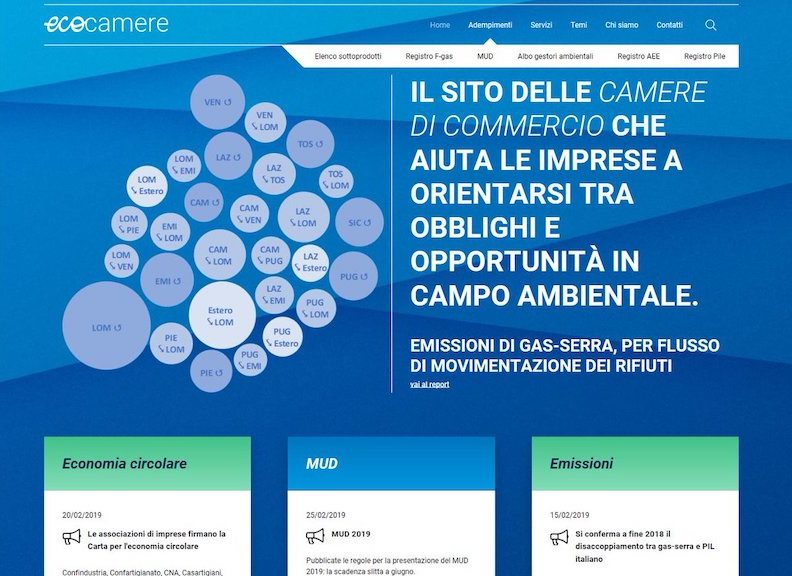 E’ operativo il nuovo portale telematico EcoCamere (www.ecocamere.it), il sito delle camere di commercio che aiuta le imprese a orientarsi tra obblighi e opportunità in campo ambientale, realizzato da Ecocerved, società in house del Sistema camerale. Dal 1° marzo è infatti possibile consultare questo sito, frutto di un processo partecipativo avviato nel 2018 con il coinvolgimento degli uffici ambiente delle camere di commercio, di imprese e associazioni di categoria (sensibilizzate da Unioncamere). Il portale ha il duplice obiettivo di informare le imprese, in particolare le Mpmi (micro, piccole e medie imprese), e al tempo stesso di fornire al personale camerale informazioni mirate, utili ad agire sul territorio supportando le aziende.