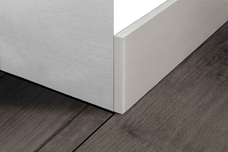 Progress Profiles amplia la gamma di battiscopa presentando un nuovo modello con spigolo vivo e due diverse altezze, disponibile in numerose finiture.