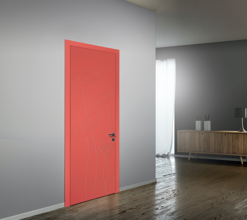 Una porta che esprime la sua originalità a partire dalle linee che caratterizzano la superficie dell’anta. Forme organiche e naturali, oppure geometriche e razionali, che prendono forza dalle tonalità piene del colore, in tutte le sfumature delle scale RAL o NCS. Il nuovo telaio rasé realizza la perfetta complanarità tra anta e coprifilo.