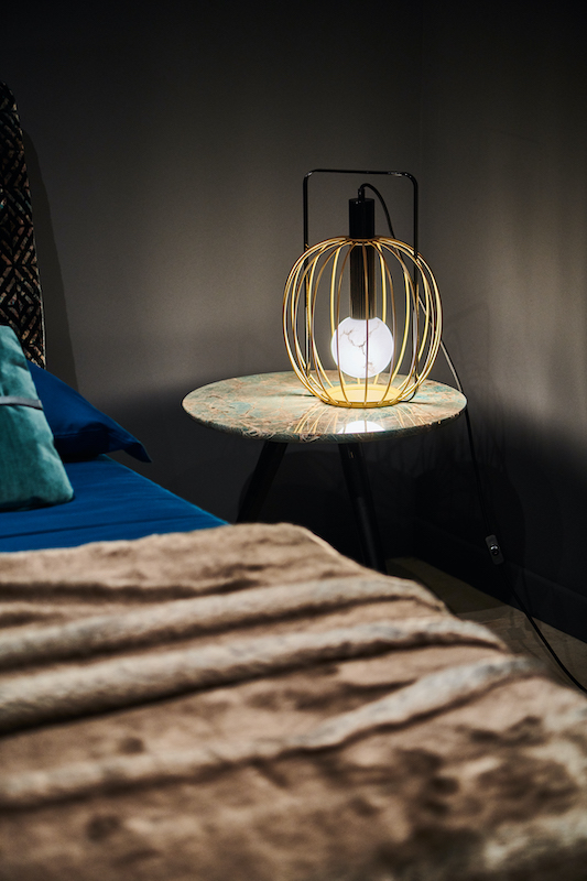 Una collezione di lampade che gioca sulle linee morbide, ma allo stesso tempo ben definite. Un piccolo bordo metallico segna i contorni della lampada, lasciando passare la luce e arricchendo al contempo l’effetto luminoso della sfera.