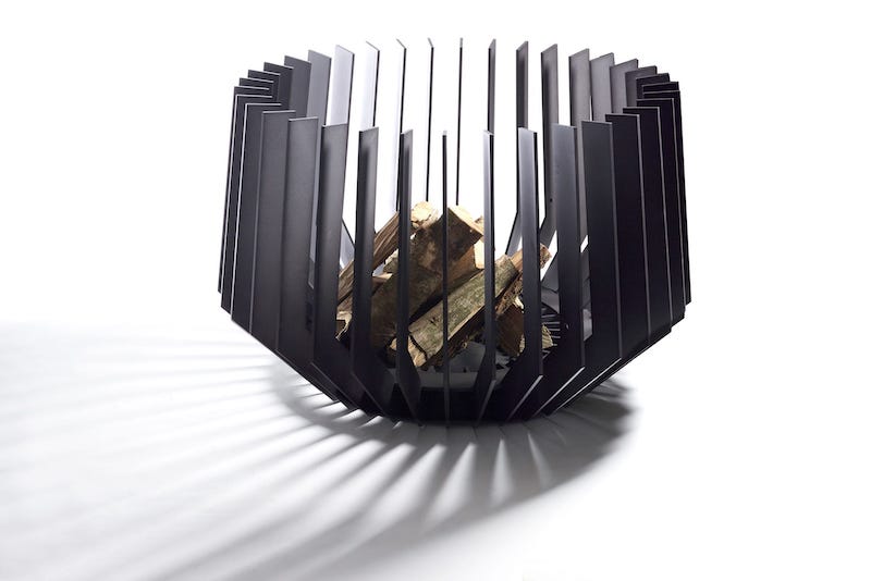 Un elegante cesto di fuoco che raccoglie la legna da ardere nelle sue solide braccia in acciaio. Questa scultura è perfetta per arredare ampi terrazzi, dehor o giardini, ma anche in spiaggia, perché crea atmosfere romantiche, illuminando e riscaldando le serate estive.