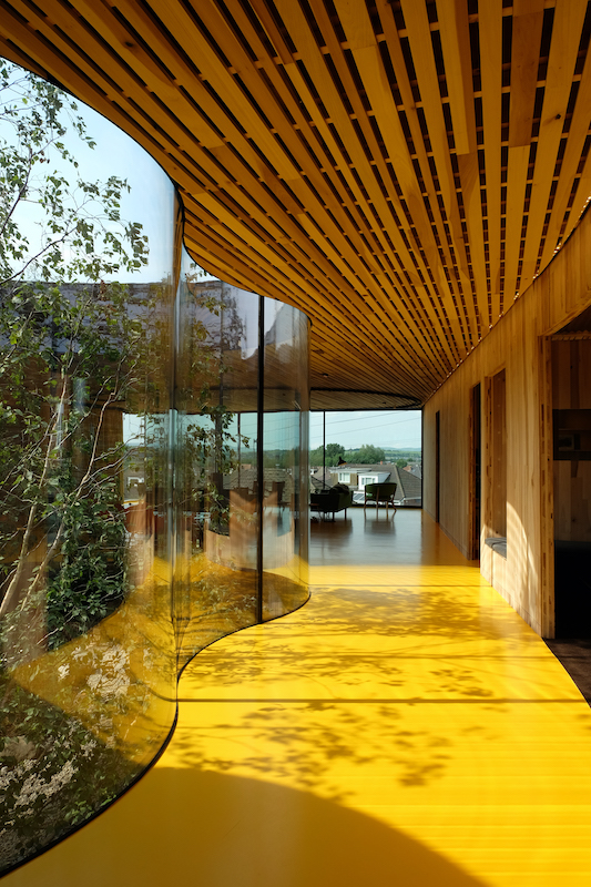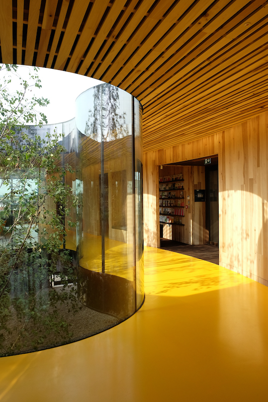Lo studio dRMM ha scelto il tulipier per la progettazione del Maggie’s a Oldham per l’influenza positiva che il legno ha sulle persone e per la bellezza, la forza e il calore che lo caratterizzano: il legno è noto per ridurre significativamente la pressione sanguigna, le frequenze cardiache e i tempi di recupero; esercita inoltre benefici sulla salute e sul benessere più di qualsiasi altro materiale usato nell’edilizia, come testimoniato dal Wood Housing Humanity Report 2015.