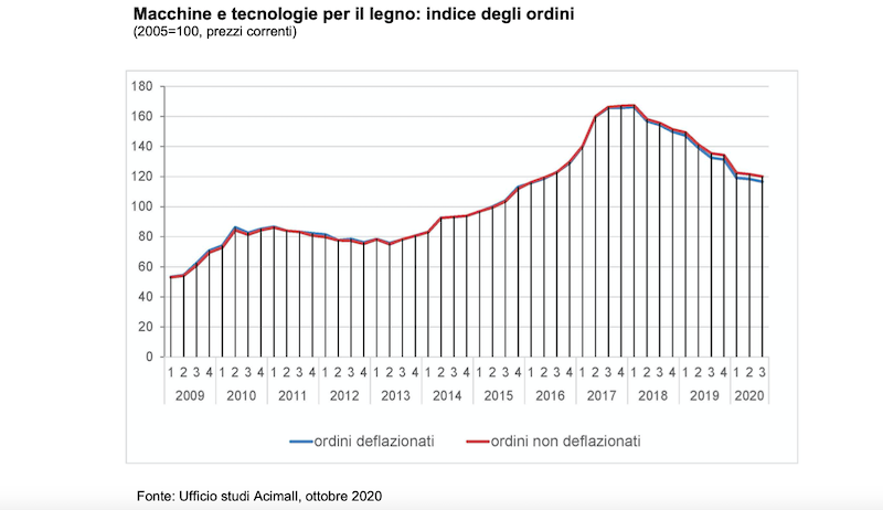 I dati relativi al periodo luglio-settembre 2020 raccontano compiutamente quanto sta accadendo anche in questo importante segmento della meccanica industriale italiana. In termini generali, gli ordini di macchine e utensili per il legno-arredo segnano un calo più contenuto rispetto alle attese, a testimonianza di un certo miglioramento della situazione economica paragonata ai trimestri precedenti, fortemente condizionati dal periodo di lockdown.
