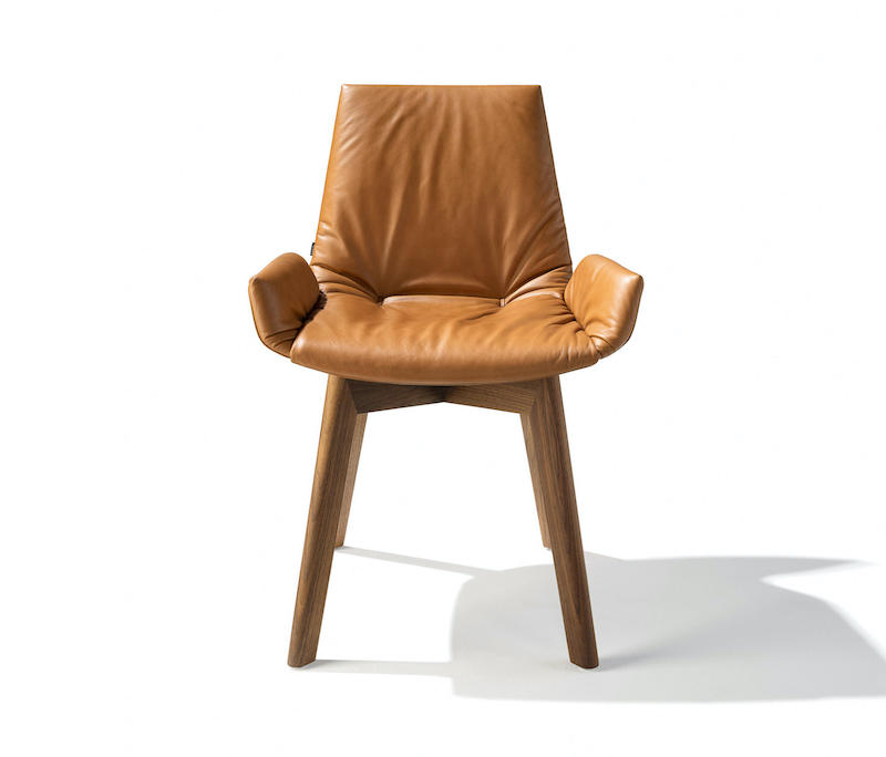 Caratteristica principale della seduta Lui Plus è l’altezza dei braccioli, studiata appositamente per riporre la sedia sotto al tavolo, permettendo di sedersi in diverse posizioni e di risparmiare spazio quando non viene utilizzata. Grazie alla seduta rialzata sui lati, Lui Plus offre maggiore sostegno e un elevato comfort di seduta, simile a quello di una poltroncina. Sul lato interno della sedia, le impunture del rivestimento creano un gradevole drappeggio che ricorda un sorriso.