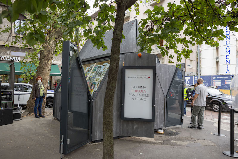 “Oggi si parla molto di rigenerazione urbana quale strumento per restituire alla collettività beni che incidano positivamente sui valori di inclusione sociale e di integrazione – ha sottolineato Deborah Zani, ceo di Rubner Haus –. L’edicola quale luogo senza porte né finestre, che di solito si affaccia su una piazza o un incrocio, è uno degli spazi emblema al centro di scambi e relazioni. Pensare a come debba essere l’edicola del XXI secolo ci ha spinto a ragionare su tre concetti chiave: sostenibilità ambientale, sostenibilità dell’abitare e sostenibilità etico-culturale che trovano un comune denominatore nel materiale edile più sostenibile, il legno. Costruire in legno vuol dire rispettare l’ambiente, garantire elevati livelli di comfort oltre che un basso consumo energetico, restituire alla comunità un bene autorigenerante che si innesta naturalmente nel tessuto urbano e di relazioni sociali”.