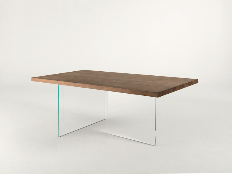 Elegante e leggero, il tavolo Air regala l’esperienza unica di condividere un momento sospeso nel fluire quotidiano. Il piano, in legno di rovere centenario, è sorretto da due gambe quasi invisibili in vetro temperato extrachiaro, sei volte più resistente del vetro normale. La personalizzazione al millimetro permette di inserire il tavolo Air anche negli ambienti lavorativi e negli uffici. Possono essere inseriti canaline e fori passacavo per contenere cavi di telefoni, computer, stampanti.