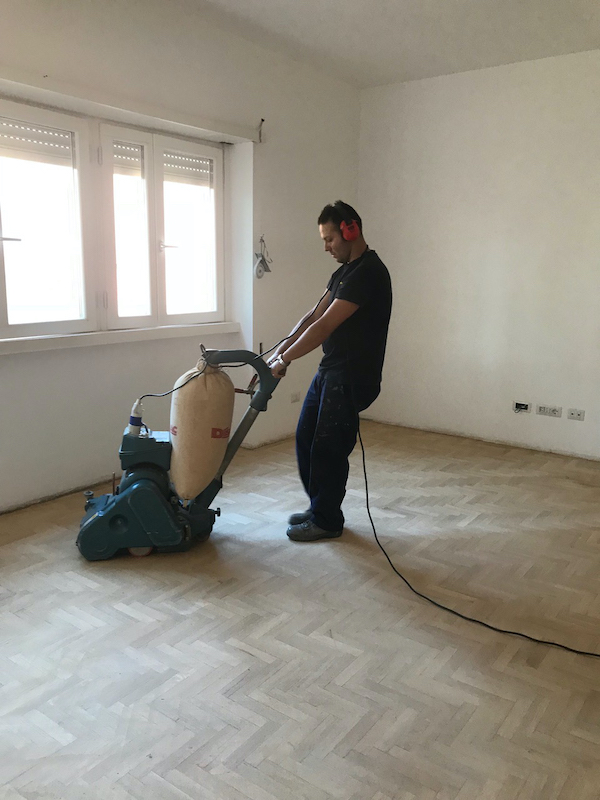 “Già. Nel 2012 ho comprato una levigatrice e una bordatrice usate da un posatore anziano che le vendeva a 1800 euro. Erano tutti i soldi che avevo da parte e non avevo la sicurezza che sarebbero entrati dei lavori, però ci ho creduto. E ho investito, grazie anche a mia moglie che mi ha sempre sostenuto… nel frattempo mi sono sposato. Ed ero l’uomo più felice del mondo, perché il mio sogno cominciava veramente a prendere forma“.