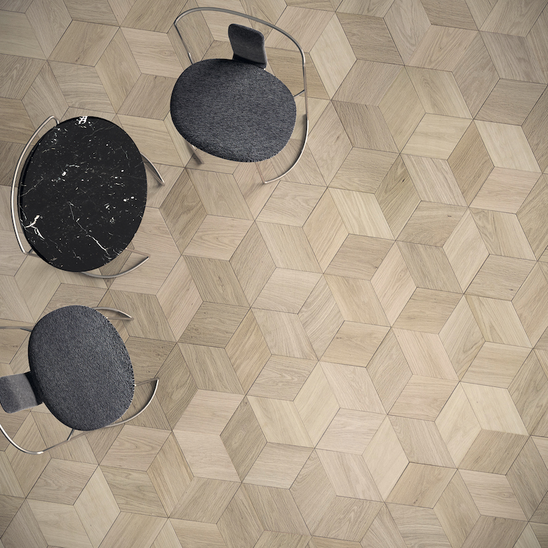 Friulparchet propone un disegno che trae le sue radici nella tradizione classica del parquet: la forma a rombo, utilizzata sin dai tempi più remoti nelle dimore storiche, crea un effetto ottico del tutto particolare. La sua superficie dà vita ad un effetto tridimensionale, grazie alla bisellatura perimetrale e a un insieme ordinato di segmenti che si modificano a seconda che ci si allontani o avvicini.
