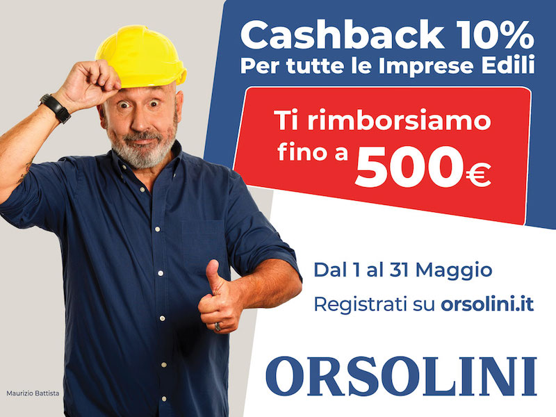 Altra grande novità della Festa dell’Edilizia è l’attivazione della super promozione cashback 10%: tutte le imprese edili che durante il mese di maggio acquisteranno materiali nei punti vendita Orsolini otterranno un 10% di cashback fino a un massimo di 500 euro.
