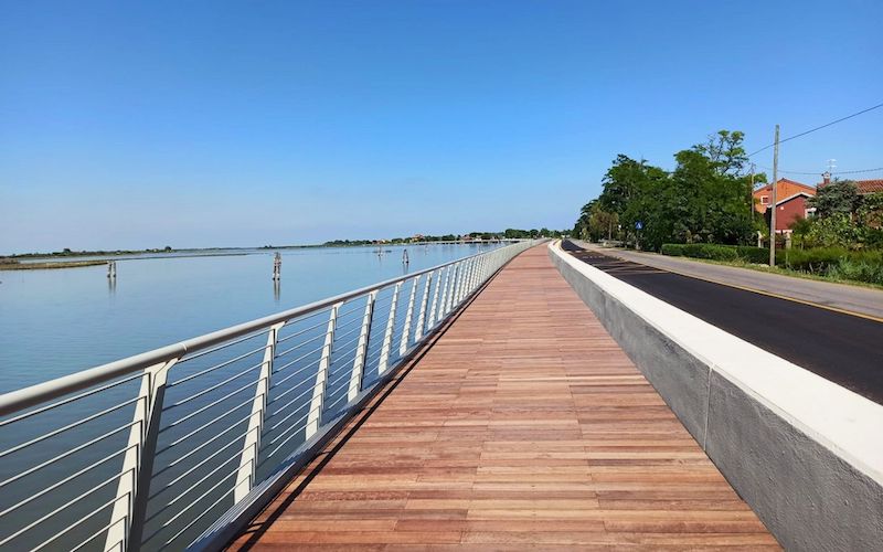 È stata inaugurata lo scorso venerdì, nel territorio del Comune di Cavallino-Treporti (VE) la prima parte della pista ciclopedonale sull’acqua realizzata a sbalzo sulla laguna di Venezia. Un tratto di circa 3,6 Km per un progetto molto più ampio, tanto che l’intera opera diverrà tra poco la ciclabile sul mare più lunga d’Europa con i suoi sette Km complessivi, dei quali ben cinque a sbalzo. Un intervento di caratura internazionale che si integra in un territorio naturalistico delicato e con equilibri fragili, da tutelare con attenzione, tanto che l’opera stessa rappresenterà anche in futuro l’indicazione per una forma di turismo sostenibile, diligente e ponderato. Un viaggio slow nella natura, tra le barene della Laguna, terreni tipici periodicamente sommersi dalle maree, alla scoperta di flora e fauna. I lavori, iniziati nel 2018, potrebbero essere completati già nell’estate 2022, con ben due anni di anticipo sul progetto iniziale.