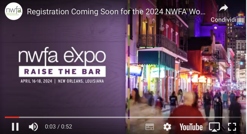 La National Wood Flooring Association (NWFA, Associazione Nazionale dei Pavimenti in Legno americana) ha annunciato che sono aperte le iscrizioni per la Wood Flooring Expo 2024, che si terrà dal 16 al 18 aprile a New Orleans, in Louisiana, presso il New Centro congressi Ernest N. Morial di Orleans