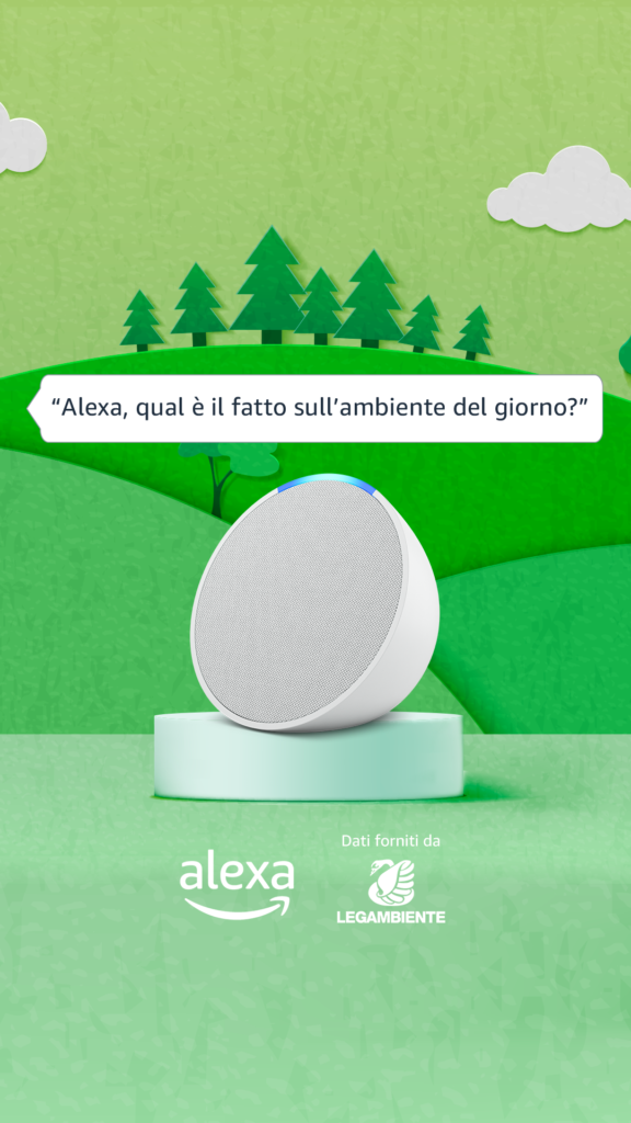 Una giusta informazione può generare consapevolezza nelle persone e, soprattutto, smuovere le loro coscienze. In occasione della Giornata Mondiale dell’Ambiente, alla richiesta “Alexa, qual è il fatto sull’ambiente del giorno?”, l’assistente vocale di Amazon risponderà con una serie di informazioni scientifiche e attendibili fornite da Legambiente. Inoltre, al “buongiorno” dei suoi affezionati utenti, il prossimo 5 giugno Alexa risponderà ricordando l’importante ricorrenza e invitando gli utenti a chiederle di più su come prenderci cura della nostra casa più preziosa.