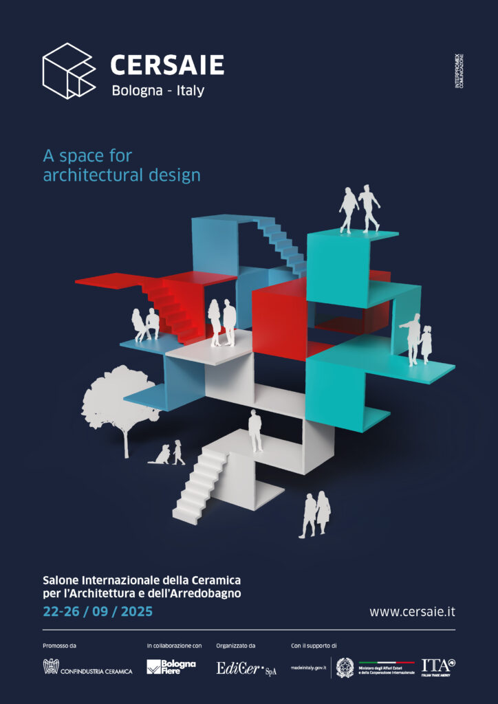 Cersaie presenta il Manifesto della 42° edizione del Salone Internazionale della Ceramica per l’Architettura e dell’Arredobagno, che si tiene a Bologna dal 22 al 26 settembre prossimi. L’immagine 2025 rafforza l’idea di spazio architettonico, il concetto che da alcuni anni accompagna la manifestazione fieristica di Bologna, che mette al centro la progettazione responsabile ed integrata di ambienti interni ed esterni.