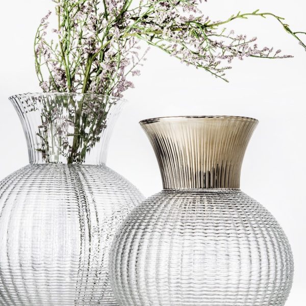 La forma sferica e il decoro ottico rendono questo vaso un oggetto classico e funzionale ...