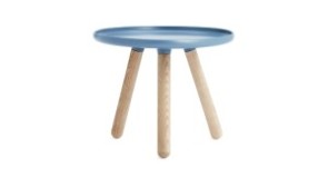 Un tavolino minimalista, con piano in materiale plastico e gambe in fr...