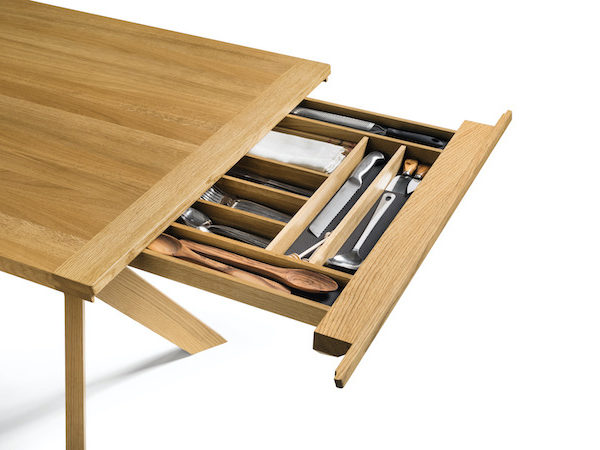 Un tavolo allungabile che si distingue per le sue forme: angoli definiti, stile puristico...