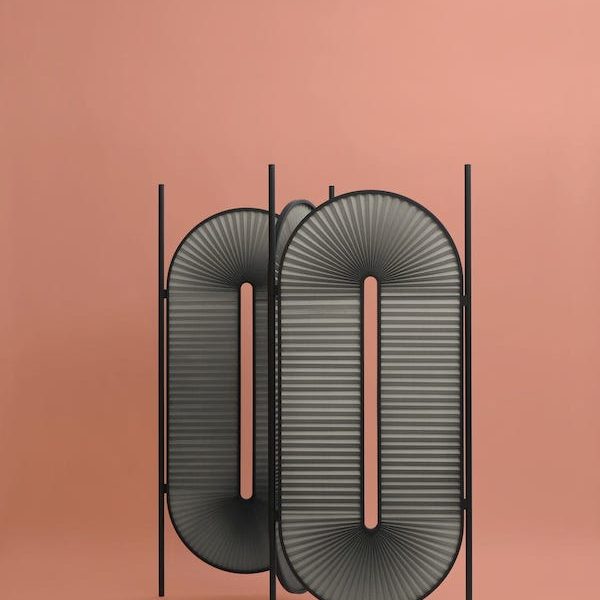 L’estetica molto raffinata del paravento del marchio austriaco Dante ricorda i ventagli...