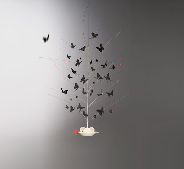 34 farfalle e una libellula in carta. 3 lampadine appoggiate su un piatto come se fossero...