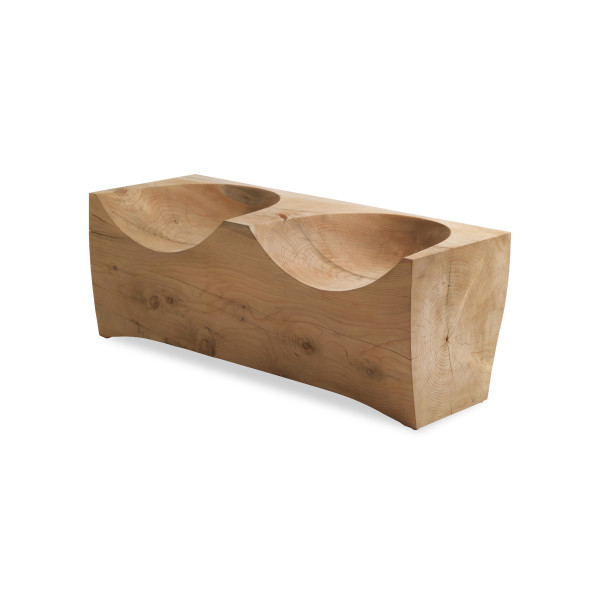 Linee squadrate e seduta ergonomica per questa doppia poltrona in legno massello di cedro profuma...