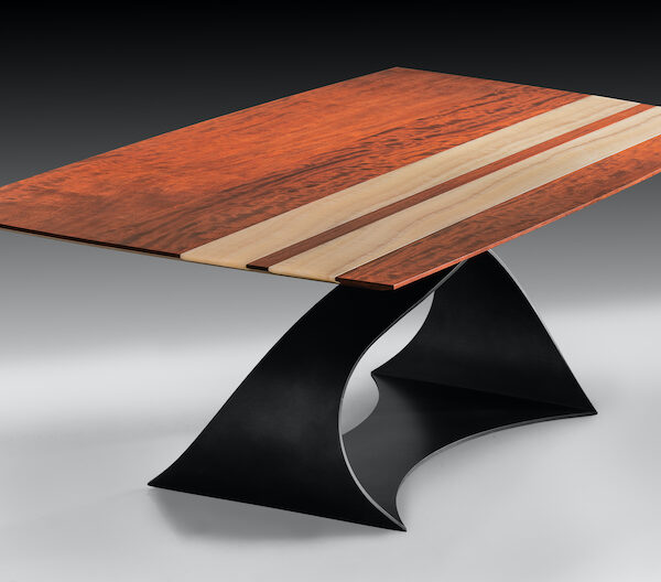 Questo esemplare unico di tavolo artistico è realizzato da un ebanista italiano e commer...