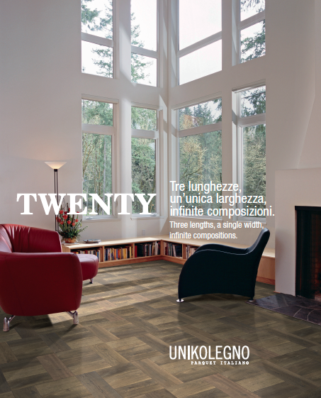 Oggi il desiderio di tornare ad una espressione semplice e basica della materia in abbinamento ad una geometria innovativa delle forme e delle prospettive di posa caratterizza le nuove collezioni di parquet. La recente collezione Tris ed il nuovissimo modulo Twenty, arricchiti dalle finiture contemporanee Genesis effetto grezzo e Reagenti infatti, interpretano ed anticipano i desideri talvolta ancora parzialmente inespressi di progettisti e designers.